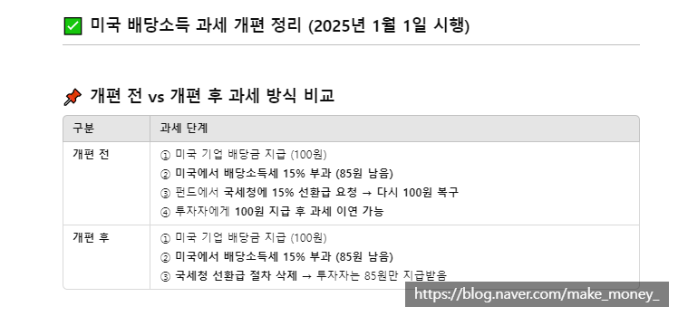 ✔ 해외 배당 ETF 투자 시 절세 효과 감소 → 국내 배당 ETF 혹은 고배당 주식으로 대안 고려